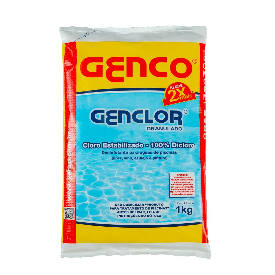 O Cloro Estabilizado Genclor da Genco é um desinfetante concentrado (dicloro/tricloro) para piscinas, que age rapidamente, eliminando bactérias e algas, e mantendo a água cristalina.